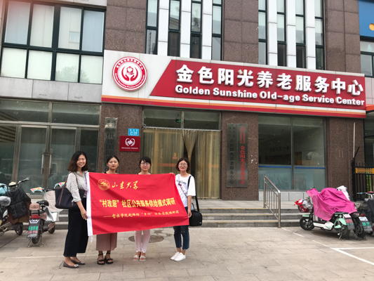 “乡行”社会实践调研图通过对潍坊市奎文区金色暖阳养老服务中心运营模式和运营情况的考察,不仅对社区养老服务的供给模式有了一定的了解,也对该社区公共服务的创新举措有了深入的学习。