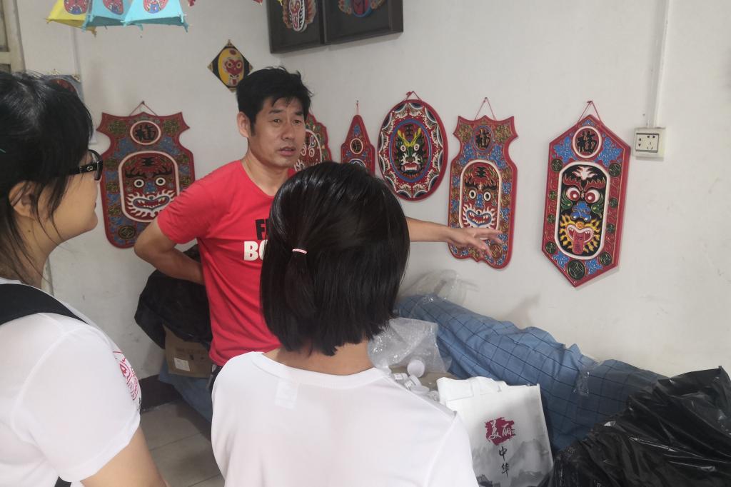 文运文脉社会实践调研团队于午后两点集合完毕,共同前往济南候式社火脸谱进行第一次实际体验。经过近一个小时的车程,三点中顺利到达。候老师热情的迎接了我们,队员们先借此机会对候式社火脸谱的历史概况,演变流程有了进一步的总体了解。
