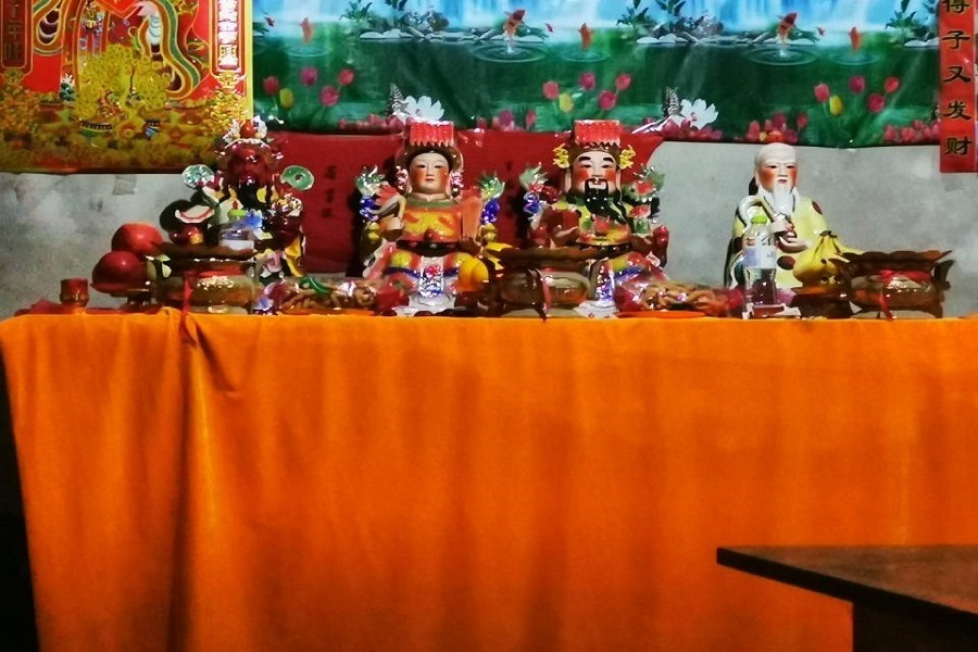 在对其他神婆的访谈中队员发现,当地的神婆“上身”之的老师”多为蛇、黄鼠狼、狐狸等陆地上的动物修炼成的精灵,而此次访问的神婆却称自身老师为王母娘娘的三女儿,而作法治病也需借助母亲王母娘娘之权威而调动各路神鬼精灵,通过“解锁子”、“还人”等方法消除带有宿命的天上落凡之人命途之多舛。而在访谈过程中,该神婆多次呈现“上身”过程,似乎进入了老师“借口说话”的状态。在资料回顾中,团队了解到,童子命一般指的是灵童转世的人,他们的命格十分特殊,导致自己的人生多灾多难,坎坷不顺。而该神婆的话语表现出明显的道教文化的影响,其思维、概念均与道教密切相关,同时又带有强烈的地方民间色彩。