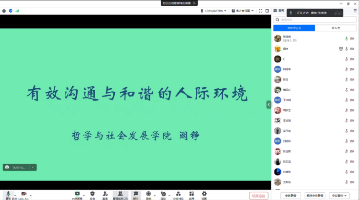 在线上举办“走进心灵”有效沟通讲座,学院党委副书记、研究生辅导员阚铮担任主讲,2022级部分研究生参加。