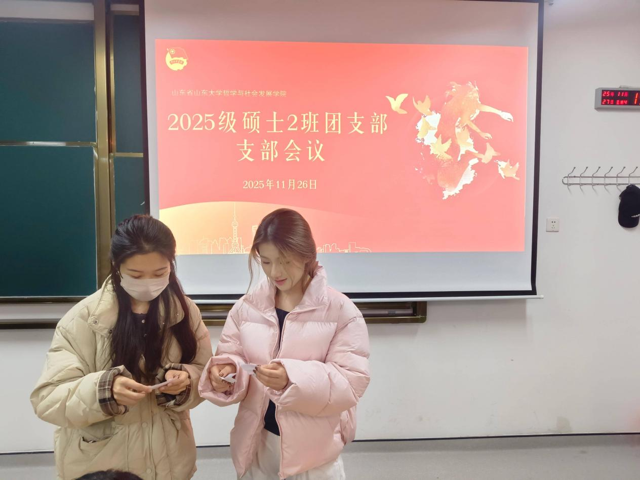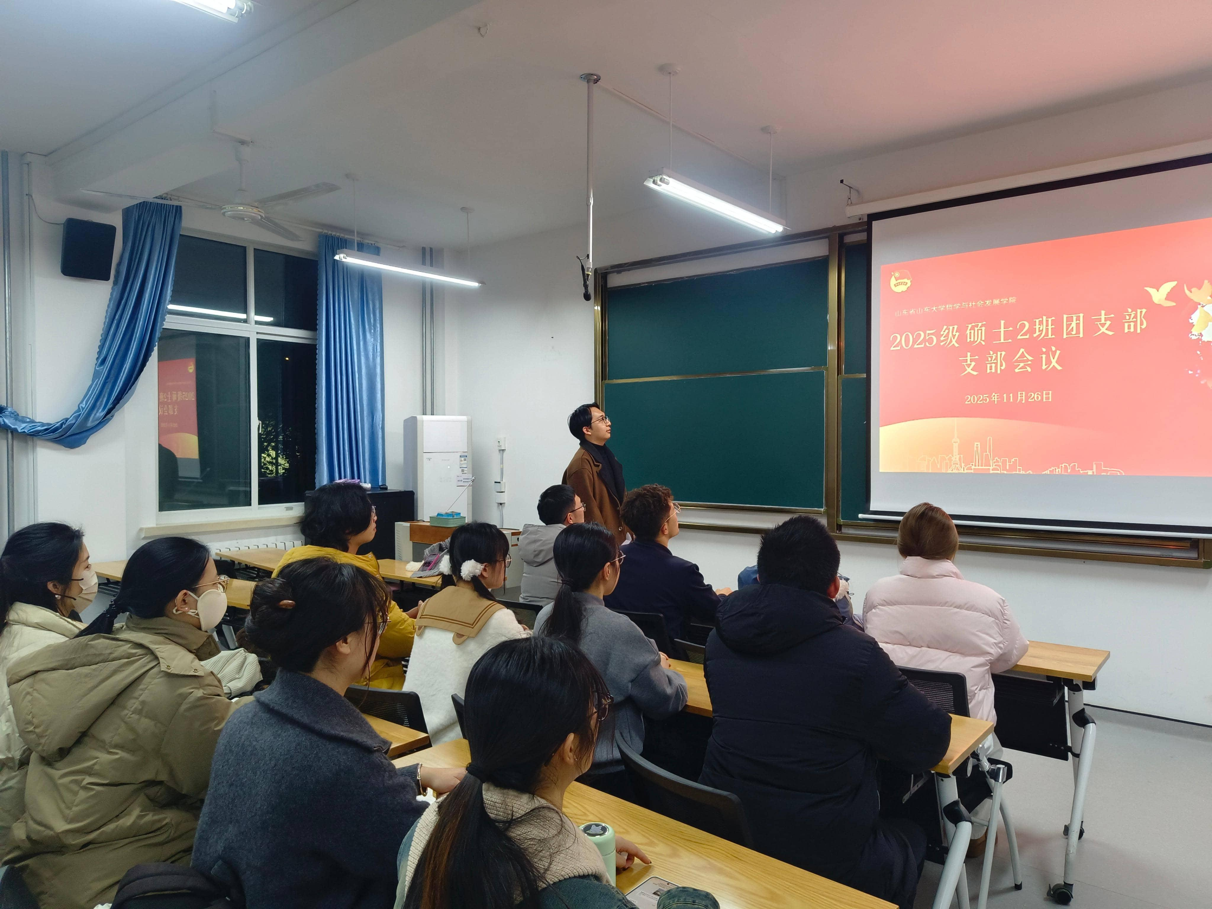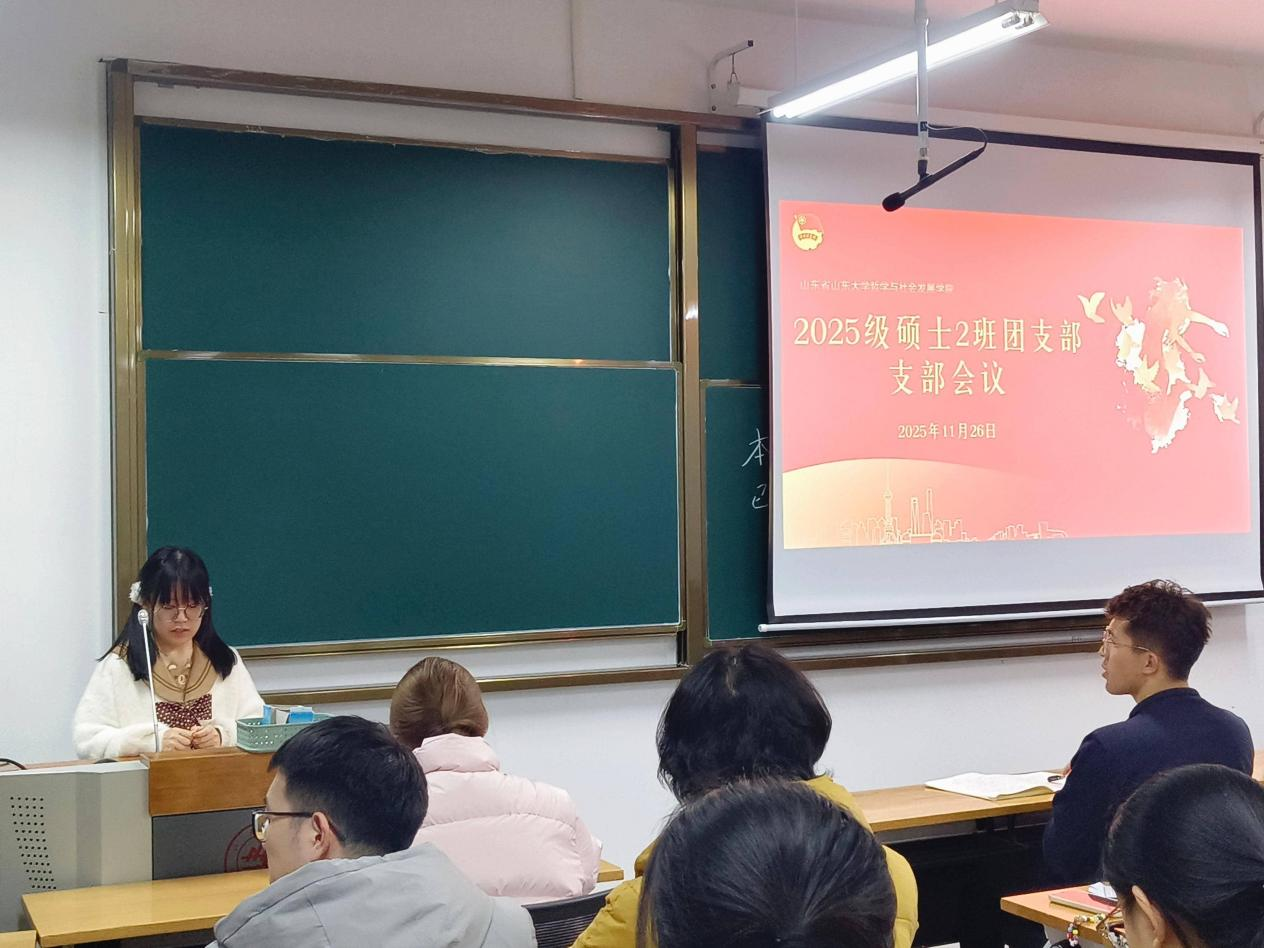 2025级硕士二班团支部召开支部大会,审议李颖同学的入团申请。会议应到团员26名,实到14名,符合相关规定。会议由支部书记张金鑫主持。