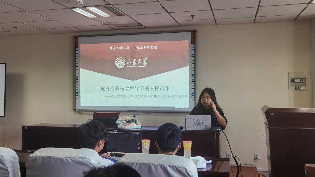 20级哲学班团支部、20级社会学一班团支部开展“学习抗日党史,感悟家国情怀”宣讲活动。团队成员主持,团支部成员参与。