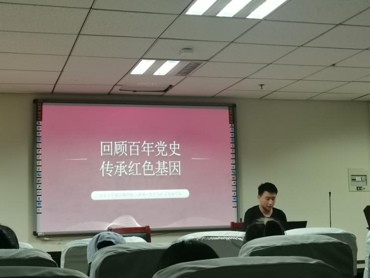 第三十一期团校成员组成的哲社党史宣讲一队主持,19级社会学班常张杰主讲,面向20级哲学强基班和20级社会学二班的全体同学开展。