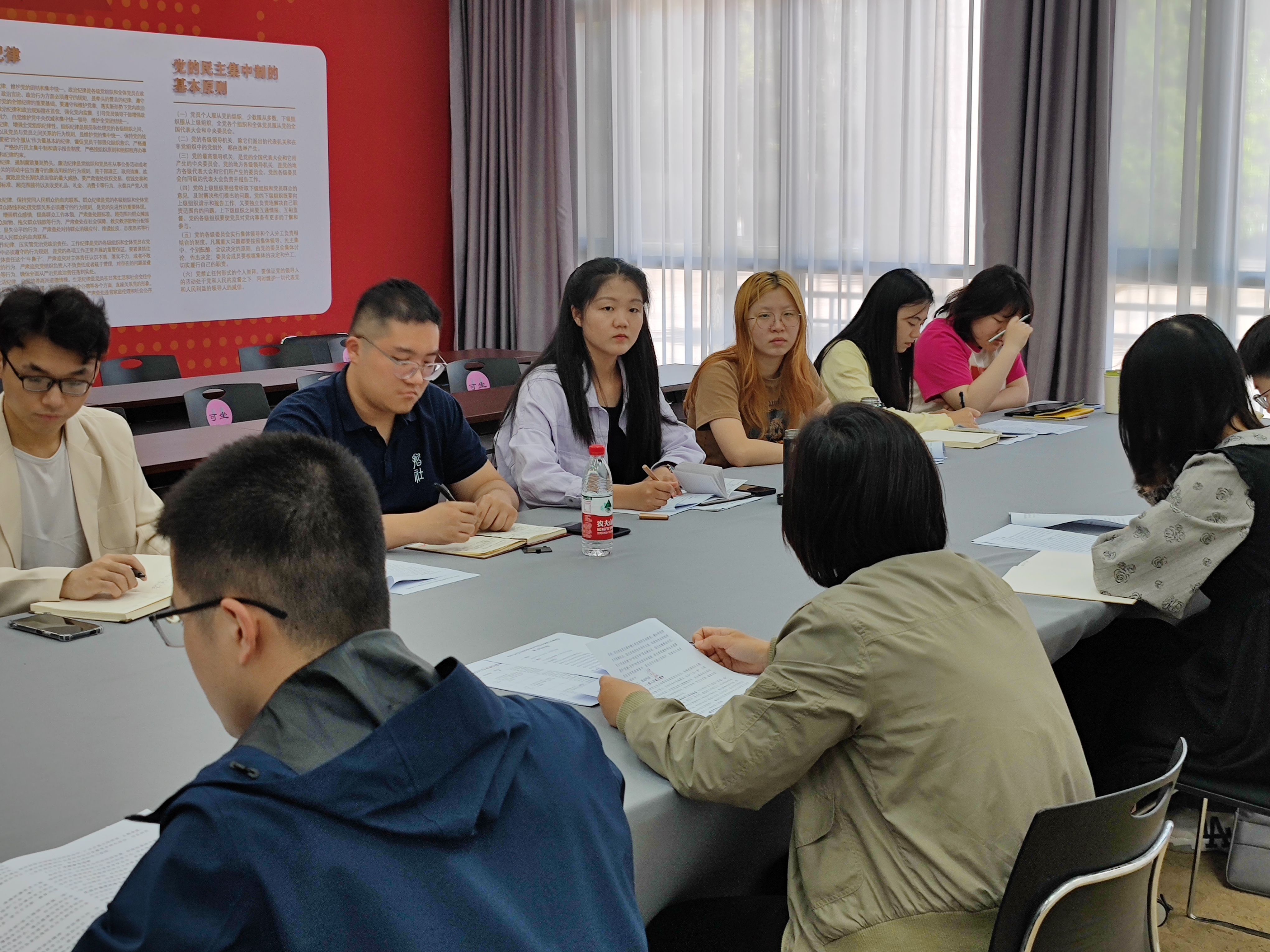 2024年度研究生党建工作联席会。学院党委副书记马燕到会指导,辅导员吕汶鑫以及学院研究生党支部委员会成员参加会议。